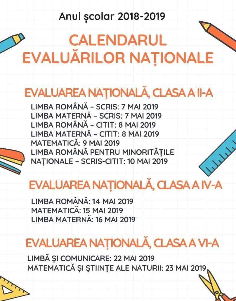 CALENDAR EVALUAREA NAȚIONALĂ 2019: